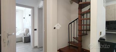 La soluzione offre poi un ulteriore spazio al piano superiore, collegato da una scala a chiocciola interna in legno dalla quale si accede ad un un unico locale; questo spazio è ad oggi posto in locazione parziale, con regolare contratto transitorio, per un importo di € 500,00 mensili.