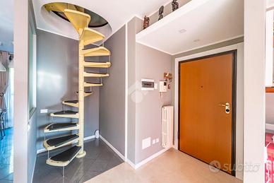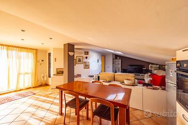 L'elegante appartamento si sviluppa su due livelli ed è situato all'interno di un raffinato residence con accesso diretto alla stazione Trenord, ideale per coloro che necessitano di spostarsi frequentemente. Gli interni spaziosi assicurano comfort e funzionalità. Il portoncino blindato si apre sulla zona giorno, che include un balcone e un terrazzo, perfetti per momenti di relax all'aperto. La cucina è ampia e pratica, mentre il soggiorno è concepito per creare un'accogliente area relax con divani. Un disimpegno conduce alla zona notte, che comprende tre camere da letto, tra cui la camera matrimoniale dotata di disimpegno e bagno con vasca. Inoltre, è presente un bagno di servizio con doccia. Una scala situata nel soggiorno conduce al piano mansardato, dove si trova un ampio locale open space con terrazzo, ideale per momenti all'aperto, insieme a una camera e un bagno con vasca e doccia. A completare la proprietà ci sono una cantina e un grande box doppio. Il residence offre anche un servizio di portineria e un ampio giardino condominiale ben curato, con vialetti che rendono l'ambiente funzionale, accogliente e sicuro. Questi elementi, uniti alla vicinanza ai trasporti pubblici e ai servizi offerti dal paese, rendono questo appartamento una scelta perfetta per una famiglia numerosa e per chi cerca un equilibrio ideale tra vita urbana e relax.