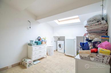 al piano secondo 2 camere matrimoniali una delle quali dotata di loggia interna di 9 mq ca, stenditoio adibito a cabina armadio, locale sgombero e bagno con doccia.
