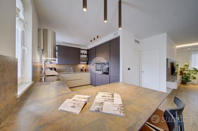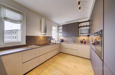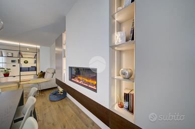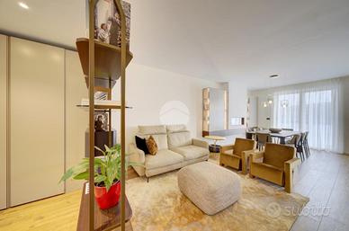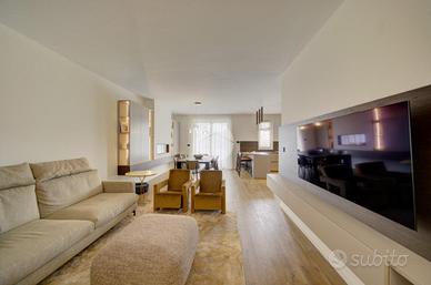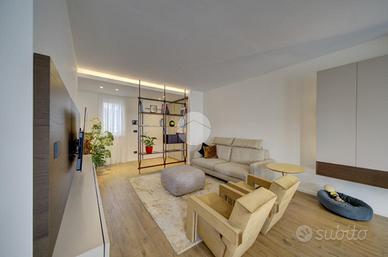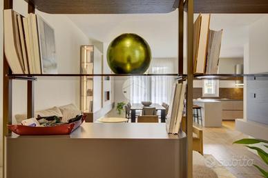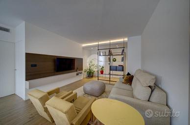 RIVOLI: In prossimità della futura fermata della metropolitana ma inserito nel tessuto di Rivoli Alta, proponiamo una residenza esclusiva dalla trama sartoriale, dotata di grande giardino privato. La disposizione attuale prevede una zona abitabile al piano terreno priva di barriere architettoniche, oltre ad una zona semi interrata con finestre e tutti i comfort del piano superiore. Il concetto del 'Su misura', si applica alla selezione di tutti gli arredi di design presenti nell'abitazione, che sono compresi nel prezzo. All'ingresso si viene accolti da un ampia zona giorno con serramenti ampi che favoriscono la luminosità degli ambienti e danno accesso al giardino esclusivo. Un corridoio color senape conduce agli ambienti della zona notte con due ampie camere da letto, la padronale con accesso diretto alla cabina armadio anch'essa dal design moderno, con porta finestra che accede al giardino, ed una seconda camera . Al piano sono presenti doppi servizi completi. Una scala interna conduce alla zona semi interrata dotata di ampie finestre, dove è presente una grande zona relax con cucina e servizi. Sempre al piano interrato sono presenti la cantina ed il box auto. La tecnologia con pompa di calore autonoma consente il riscaldamento ed il raffrescamento a tutto l'immobile; la classe energetica A consente bassi consumi. Una soluzione dal fascino unico. Per le sue caratteristiche uniche, l'immobile è stato pubblicato sui portali di AD, QUIN e COSE DI CASA. Qui d seguito il link: https://www.ad-italia.it/gallery/arredamento-su-misura-appartamento-torino/