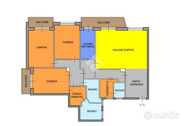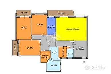 Questa proprietà composta da ampio ingresso, salone doppio, tre camere matrimoniali, cameretta, cabina armadio, cucina abitabile, tre bagni e tre balconi si distingue per la sua eleganza e per essere una soluzione ideale per chi cerca un'abitazione di alta rappresentanza.