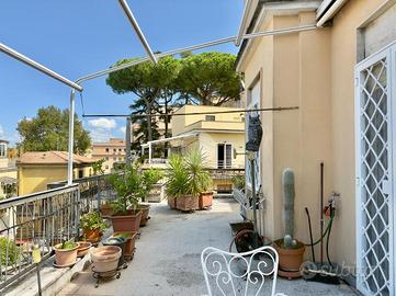 Attualmente l'immobile internamente si presenta in stato originale e si compone di ampio ingresso, salone doppio, due cucine, 4 camere da letto, due bagni finestrati, due balconi e due bellissimi terrazzi.