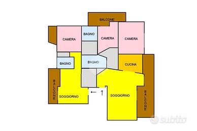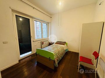 da letto matrimoniale che conduce con una porta finestra al quarto balcone , bagno completo di tutti i servizi con box doccia ed un comodo ripostiglio che può diventare zona lavanderia.