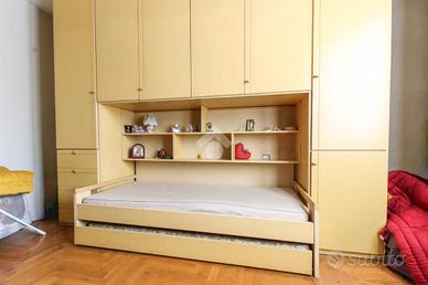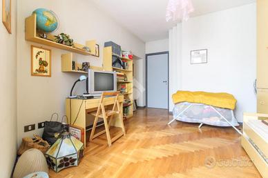 Un soggiorno collegato funge comodamente da disimpegno verso la zona notte: due camere da letto molto spaziose, un bagno finestrato completo di box doccia e vasca.