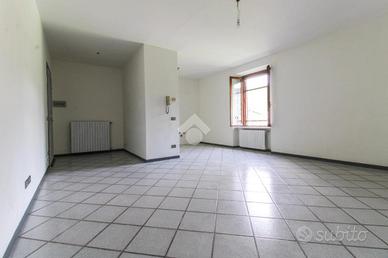 L'abitazione si apre su una luminosissima zona giorno open-space, con predisposizione per cucina a vista e affaccio piacevole.