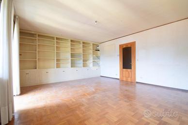 L'ingresso dell'appartamento apre su un corridoio spazioso che divide i vari ambienti della casa. Il soggiorno è di generose dimensioni, dotato di parquet ed affaccia sul grande terrazzo esposto a Sud. La cucina è abitabile e dispone di un balcone rivolto sul cortile interno. Una grande stanza con doppia porta di ingresso, può essere utilizzata come salotto, oppure come grande camera padronale, oppure può essere unita al soggiorno per ricavare un'unica zona giorno. Il bagno finestrato con vasca ed un pratico ripostiglio concludono la parte living dell'appartamento.