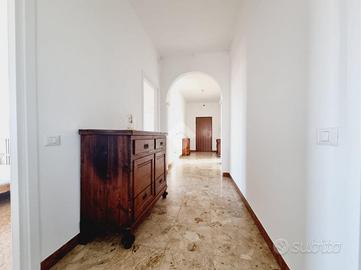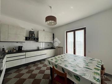 L'abitazione, di generosa metratura pari a 163 mq, accoglie con un ingresso che conduce alla cucina e al soggiorno, due ambienti distinti ma collegati da un comodo terrazzo, ideale per pranzi all'aperto o momenti di relax.