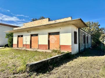 Santa Maria in Campis. A circa 8 km da Spoleto, proponiamo in vendita esclusiva fabbricato posto tutto su unico livello, con garage e giardino su 4 lati di circa 900 mq. con pozzo. Ideale per realizzare una casa singola di ampia metratura, anche con 2 unità immobiliari indipendenti. Posizione pianeggiante ma panoramica ed ottimamente esposta. Visionabile in qualsiasi momento.