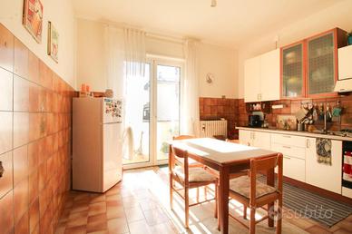 Il secondo appartamento è un trilocale composto da soggiorno con accesso al balcone, cucina separata, due comode camere da letto e bagno finestrato con vasca.