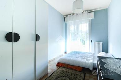 Il primo appartamento è un quadrilocale composto da luminoso soggiorno, cucina - entrambi con accesso al balcone - e zona notte con due camere matrimoniali, una cameretta e bagno finestrato con box doccia.