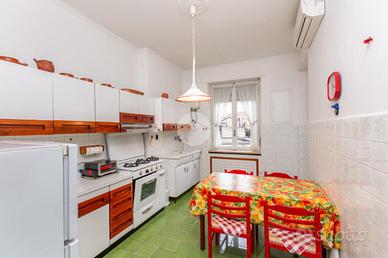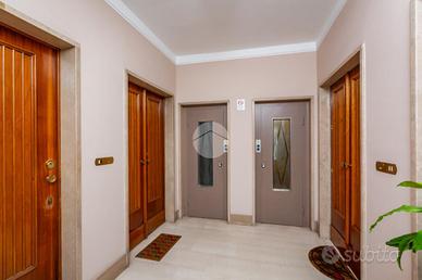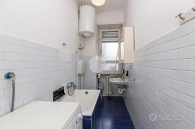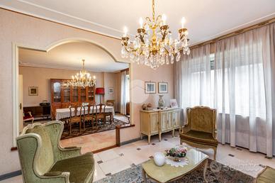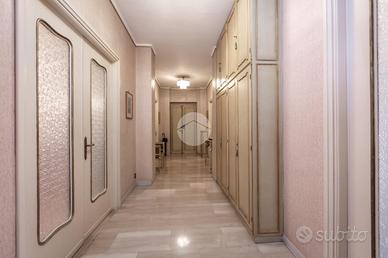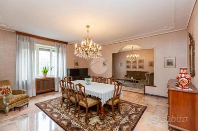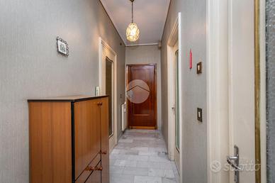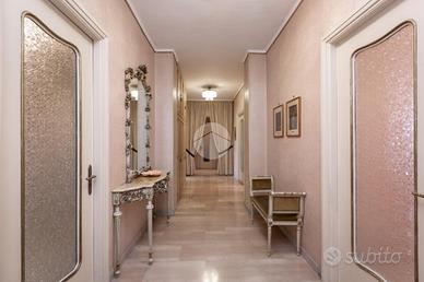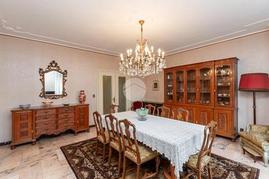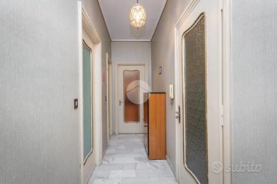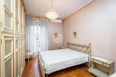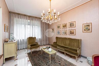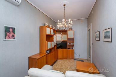 L'appartamento si trova al secondo piano di un palazzo signorile dotato di doppio ascensore e servizio di portineria. L'immobile internamente è allo stato originale e si sviluppa su una metratura generosa, caratteristica che rende vivibile al meglio ogni singolo vano. La casa dispone di un doppio ingresso, uno per la zona giorno ed uno per la zona relax e notte. Nella prima troviamo una cucina abitabile, esposta sull'interno cortile grazie alla finestra e all'accesso al balcone, che ci permette di ospitare una cucina lineare ed il tavolo. A seguire, il bagno dotato di finestra ed una camera ad oggi adibita a zona tv, anch'essa in affaccio sul cortile tramite il balcone. Nella seconda abbiamo un ampia sala, di circa 30 mq, ad oggi ampliata e collegata ad una delle camere, sicuramente l'ambiente dove passare comodamente momenti di relax in famiglia. Entrambe esposte sul corso tramite due ampie finestre. Il disimpegno ci accompagna nella zona notte dove troviamo due camere da letto, una in affaccio sul corso ed una lato cortile, entrambe grazie al balcone. Completano questa seconda parte della casa, un bagno finestrato ed un ampio ripostiglio. In cucina ed in due camere è presente il climatizzatore. La proprietà dispone di una cantina al piano interrato. Il teleriscaldamento è il sistema di riscaldamento presente nel condominio. In conclusione c'è la possibilità di poter acquistare a parte un box auto singolo al piano interrato al prezzo di € 25.000,00.