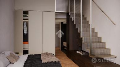 Situato al primo piano nobile, l'alloggio si raggiunge attraverso uno splendido scalone privato che anticipa subito il carattere elegante della residenza. Appena varcata la soglia, si viene accolti da un soggiorno ampio e luminoso, dal quale si accede al terrazzo privato: un piccolo angolo di quiete nel cuore della città, uno spazio prezioso che regala luce, respiro e valore a tutta l'abitazione.