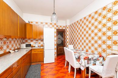 Dall'ingresso si accede direttamente al disimpegno che distribuisce i vari ambienti, quattro camere da letto di taglio matrimoniale, soggiorno, tinello con cucinino, doppi servizi finestrati assicurando luminosità ed aerazione naturale ed infine due comodi ripostigli.