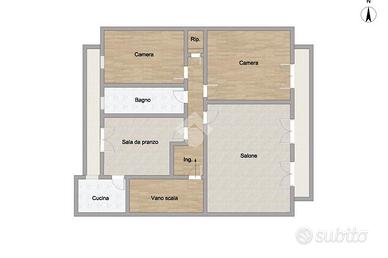 L'appartamento al piano terra è composto da un ampio soggiorno che potrebbe facilmente essere trasformato in una camera matrimoniale, adiacente al soggiorno si trova la sala da pranzo, un ambiente accogliente perfetto per ospitare pranzi e cene in famiglia o con amici, un bagno, un cucinotto, un locale di sgombero che attualmente è adibito a cucina, ma che può essere riconvertito secondo le esigenze dell'abitazione come ad esempio ripostiglio o dispensa.