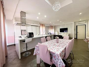 Nel cuore di Montecchio, comune di Vallefoglia, si propone in vendita un ampio appartamento di design, contraddistinto da finiture eleganti e di un sobrio lusso, situato al piano primo di una piccola palazzina, ideale per chi cerca spazio e funzionalità. Con una superficie che sviluppa circa 202 mq commerciali, l'immobile offre al piano primo un salone accogliente con area dedicata al pranzo e ampia cucina a vista, disimpegno, due bagni di cui uno dotato di box doccia e l'altro di vasca idromassaggio, tre camere da letto e due balconi di cui uno particolarmente ampio. La mansarda, non collegata internamente ma accessibile dalla medesima scala che conduce all'appartamento, è stata sapientemente trasformata in un appartamento di tipo trilocale con soggiorno-cucina, due camere e bagno, aggiungendo ulteriore valore all'immobile. Completano la proprietà due posti auto, una comodità aggiuntiva che garantisce massima praticità. L'immobile, costruito intorno agli anni '80, è stato ristrutturato intorno al 2015 ed è dotato di aria condizionata, assicurando un ambiente confortevole in ogni stagione. Questo immobile risulta essere un'ottima soluzione abitativa che unisce centralità e ampi spazi, perfetta per famiglie numerose, soluzione genitori-figli o per chi desidera ambienti distinti.