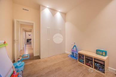 La zona notte offre tre camere da letto, ciascuna dotata di cabina armadio privata. Presenti inoltre due bagni completi con doccia ed un comodo locale lavanderia.