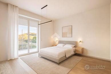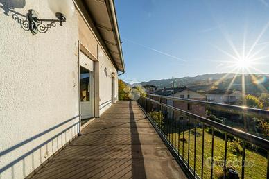 L'appartamento si compone di ampio salone, tinello, cucinotto, 4 camere da letto e bagno. Gode di un grande terrazzo con vista panoramica sulle colline circostanti, ideale per pranzi e cene, e altri 2 balconi. L'immobile è completato da un ampio solaio al grezzo, un'autorimessa e un giardino privato separato dall'abitazione.