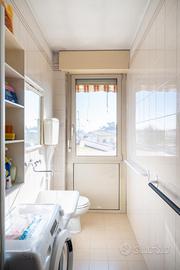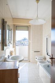 Proseguendo verso il reparto notte troviamo le tre camere da letto, di cui una matrimoniale di 16.70 mq, una camera doppia di 12.70 mq ed una camera singola di 9.60 mq, dotate di un balcone, due bagni, entrambi finestrati ed un ripostiglio.