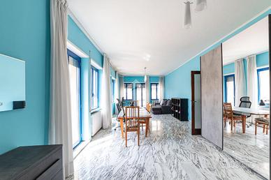 L'immobile si trova al quarto piano di un palazzo ristrutturato e ben tenuto, servito da ascensore, e colpisce fin da subito per la sua luminosità e gli spazi ampi e ben distribuiti.