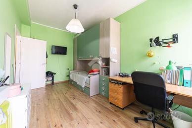 La zona giorno è composta da un ampio e luminoso soggiorno, perfetto per rilassarsi o ricevere ospiti, e da una cucina abitabile comoda e funzionale. La zona notte offre tre camere da letto: una matrimoniale e due singole, di cui una con bagno privato dinestrato con doccia. È presente anche un secondo bagno finestrato, anch'esso completo di doccia.