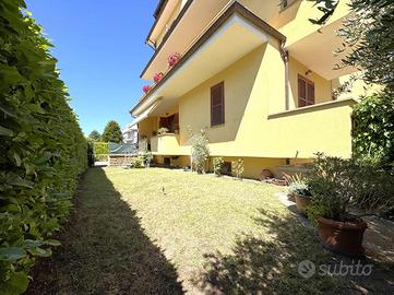 L'immobile è composto da un ampio soggiorno con accesso al primo giardino, un ampia cucina abitabile con accesso ad un secondo giardino e alla terrazza.