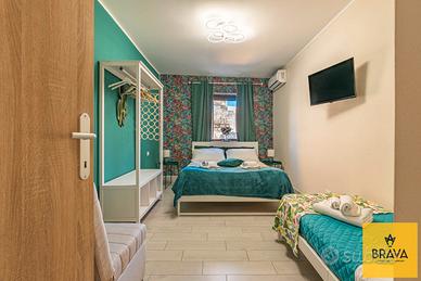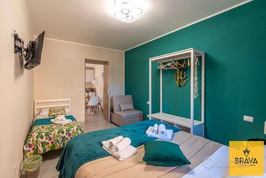 Situato al secondo piano di un edificio storico, questa proprietà di circa 220 mq ti accoglie con un ampio ingresso che introduce a quattro camere spaziose, ognuna con bagno privato, perfette per garantire comfort e privacy ai visitatori. Ogni finestra offre uno scorcio della storia della città, un incantevole connubio tra antico e moderno. Una delle camere è un vero e proprio rifugio di lusso, una suite dotata oltre che del bagno privato, di un piccolo angolo cottura e soggiorno, creando uno spazio intimo e funzionale.