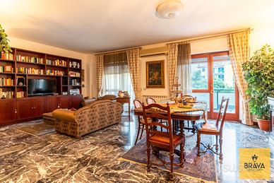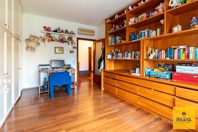L'appartamento si presenta in ottime condizioni ed è estremamente luminoso grazie alla quadrupla esposizione e ai tre balconi. È dotato di riscaldamento autonomo con caldaia, infissi in douglas con doppio vetro e si inserisce in uno stabile con servizio di portineria e area videosorvegliata, garanzia di comfort e sicurezza.
