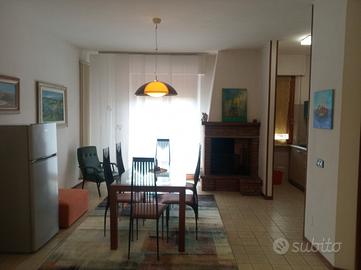 Appartamento indipendente al secondo piano, ben riscaldato con ampia zona giorno e angolo cottura, 2 camere e un bagno, disponibile per affitti brevi e periodi definiti. Dispone anche di 2 terrazzi e un garage.