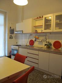 A Genova Ovest, 1 km dal casello autostradale, affittasi come seconda casa (affitti settimanali, mensili ), appartamento arredato, provvisto di tutto, con grande giardino privato, in zona silenziosa e tranquilla, per studio, lavoro, fiere o turismo. Si preferisce a persona sola, referenziata, per periodi più lunghi ( ma ricettività fino a 3 posti letto, per tempi brevi). Situato in via privata, presso due aree verdi (giardini comunali) con scarso passaggio veicolare, ma a pochi minuti a piedi dai servizi ( negozi, fermata bus, stazione ferroviaria). Dista 8 minuti AUTO da piazza Piccapietra e 10 minuti AUTO dalla FIERA di Genova.