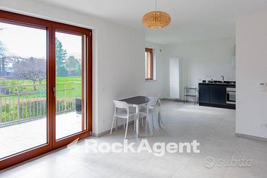 Rif:107912 - 08/04/2026 (128094382) - Ci sono case in cui entri e senti subito che qualcosa è diverso. Questa è una di quelle. Siamo a Giaveno, in via Calvettera, a pochi passi dal centro, dalle scuole e dai negozi. Una posizione che semplifica la vita senza rinunciare a nulla. Ma è appena varcata la soglia che capisci il valore vero di questo appartamento. L'accesso è pensato con intelligenza: dall'ingresso esterno, già a mezza quota, bastano pochi gradini per raggiungere il piano. Niente rampe interminabili, solo la sensazione piacevole di arrivare a casa con facilità, ogni giorno. La zona giorno ti accoglie con apertura e respiro. La cucina si affaccia sul soggiorno in un grande open space, dove lo spazio non è mai sprecato. La luce entra generosa e accompagna lo sguardo fino al terrazzo, dove il mondo si apre davvero: davanti a te un prato verde e, oltre, le montagne. Silenziose, imponenti, sempre diverse a seconda dell'ora e della stagione. Quel terrazzo non è solo uno spazio esterno, è una prospettiva sul tempo libero, sul caffè del mattino, sul tramonto d'estate. La scala interna, con struttura in ferro e gradini in legno, è uno di quegli elementi che si notano e si apprezzano: unisce solidità e carattere, e porta al piano superiore con discrezione. La camera da letto è ampia, luminosa, con portafinestra e balcone affacciato sulle stesse montagne. Svegliarsi con quella vista cambia il modo in cui si inizia la giornata. Il bagno al piano superiore è grande, completo di vasca, con una zona già predisposta per lavatrice e asciugatrice, perché il comfort vero non trascura i dettagli pratici. L'edificio è stato costruito nel 2022 e porta con sé tutto ciò che una casa moderna dovrebbe avere: classe energetica A4 con consumi ridotti al minimo, pannelli fotovoltaici condominiali, sistema di ventilazione e trattamento dell'aria, antifurto e videocitofono. Non è solo risp - Classe: A4 - IPE: 26.64 kWh/mq anno