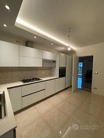 Poi troviamo la cucina separata completamente arredata nuova, con uscita in un altro poggiolo e accessoriato da tende da sole elettrica, nella zona notte con parquet in rovere massello abbiamo 3 camere di cui 2 matrimoniali ed una singola, 2 bagni entrambi finestrati completi con sanitari di alta qualità e piastrelle in gress porcellanato Versace anche nella zona giorno, inoltre c'è anche una comoda lavanderia con accesso dal poggiolo della cucina.