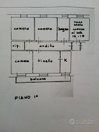 Vendesi appartamento sito al piano primo di mq 117 composto da : cucina, soggiorno con camino, tre letto matrimoniali, bagno, ripostiglio. L'appartamento seppur risalente agli anni 60, ha subito la ristrutturazione del bagno e ultimamente gli impianti nuovi di acqua/ fogna .