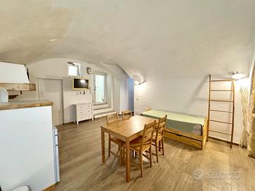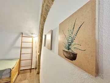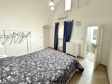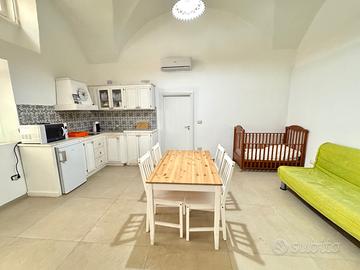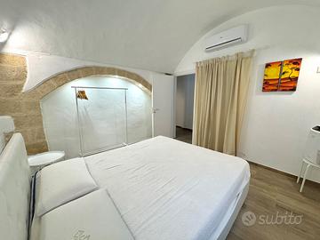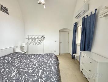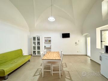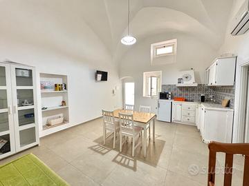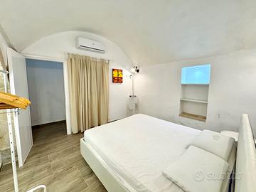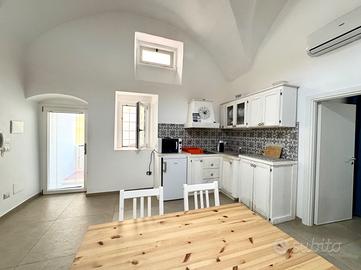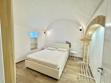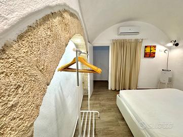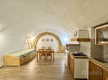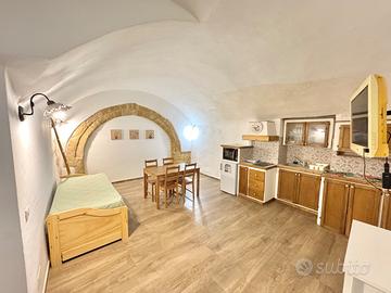 L'immobile: Ingresso principale in una corte comune con altre abitazioni, si accede dal piano terra alla prima soluzione che si dispone come segue: ingresso in ampio soggiorno con angolo cottura in muratura, una camera da letto matrimoniale, un pozzo luce con accesso da disimpegno e infine un bagno finestrato completo di lavabo wc e box doccia. Tutto questo, è caratterizzato da affascinanti volte a botte storiche dell'epoca, completo di climatizzatore, infissi interni in legno mentre gli esterni e sono in pvc con doppio vetro.