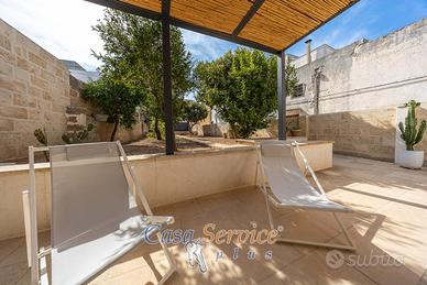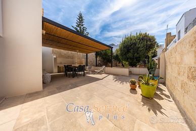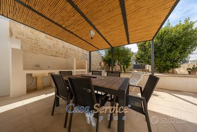 Benvenuti a Matino, dove la storia incontra il lusso moderno. Nel cuore del centro storico sorge questa dimora storica finemente ristrutturata, un'oasi di pace e comfort. L'immobile si estende su 111 mq ed è circondato da un magnifico giardino recintato di 210 mq, una vera rarità in questa zona. La sua posizione è strategicamente privilegiata, a pochi chilometri dalle più belle spiagge di Gallipoli, permettendo di unire la tranquillità del borgo storico con la vivacità del mare. La casa è stata rinnovata con materiali di pregio e un gusto ricercato, mantenendo l'autenticità degli spazi, ma offrendo tutte le comodità contemporanee. All'interno troverete un'accogliente sala, una sala da pranzo, una cucina funzionale, una camera da letto, un ripostiglio e un bagno elegante. L'ampio giardino privato, con i suoi angoli verdi e la sua atmosfera di tranquillità, è l'ideale per momenti di relax o per cene all'aperto. Eccellenza e TecnologiaQuesta proprietà si distingue per la sua efficienza energetica e la sua dotazione tecnologica all'avanguardia: Rivestimento esterno a cappotto termico: Massima coibentazione per un'efficienza energetica superiore e un comfort abitativo ottimale. Classe energetica A: Massima efficienza e risparmio sui costi di gestione. Impianto fotovoltaico da 6 kW con accumulo da 10 kW: Produzione di energia pulita e autosufficienza energetica. Solare termico: Acqua calda sanitaria a costo zero. Climatizzazione con pompa di calore: Comfort termico in ogni stagione. Cancello automatico: Comodità e sicurezza. Antifurto e videosorveglianza: Protezione completa della vostra casa. Due posti auto: Un privilegio introvabile nel centro storico. Contattateci per una visita! Per maggiori informazioni chiamare il numero verde gratuito anche da cellulare o il Rif.: MBCP-298