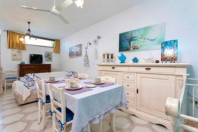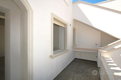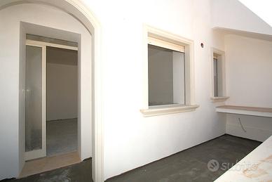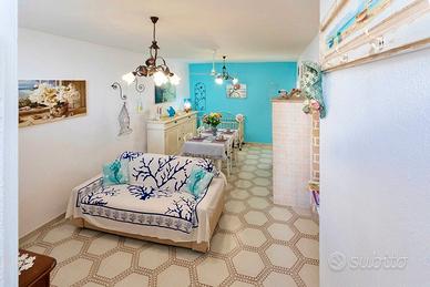 La prima abitazione si trova al piano rialzato, attualmente in fase di completamento, ed è composta da un luminoso soggiorno con cucina a vista, due camere da letto, un bagno, un comodo terrazzo a livello e un lastricato solare da cui si gode una piacevole vista mare. Al piano terra, leggermente sottoposto rispetto al livello stradale, troviamo la seconda abitazione già pronta all'uso, composta anch'essa da soggiorno con angolo cottura, due camere da letto e un bagno, con spazi ben distribuiti e finiture curate.