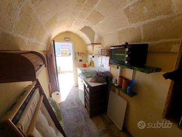 Proponiamo in vendita: abitazione abitabile ed indipendente composta da un seminterrato a zona a giorno con salotto, pranzo con termocamino, cucina, bagno e cortile;