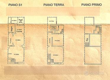 un piano rialzato con soggiorno, 2 camere da letto, bagno, corridoio e chiostrina; ed un piano 1° adibito a ripostiglio + terrazza. Dispone di aqp-fognatura-riscaldamento-clima.