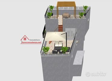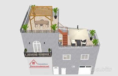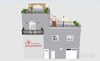 L'immobile attualmente si presente su tre livelli: piano terra con garage e deposito e bagno, il piano primo composto da 2 vani volta a stella adibito a sala da pranzo/soggiorno, angolo cottura, una camera da letto e bagno. Al secondo piano troviamo 3 camere da letto di cui una con vano volta a stella fronte strada con accesso al balcone. Con un intervento di ristrutturazione, questa abitazione offre la possibilità una comoda zona giorno con bagno al piano primo, e una zona notte al secondo piano composta da due camere con bagno, oltre a un garage e deposito al piano terra. Sul terrazzo panoramico, invece, una volta arredato con mobili da giardino si potrebbe mangiare fuori e stare in completo relax, perfetta per godersi momenti di tranquillità e convivialità.