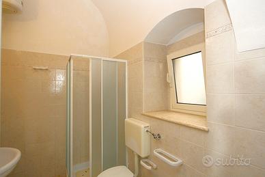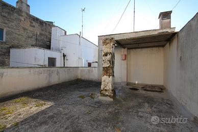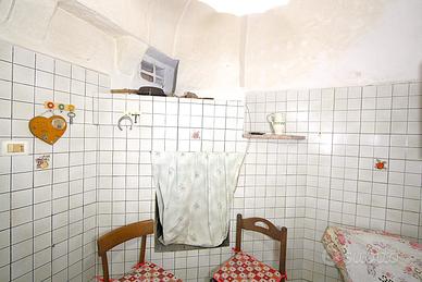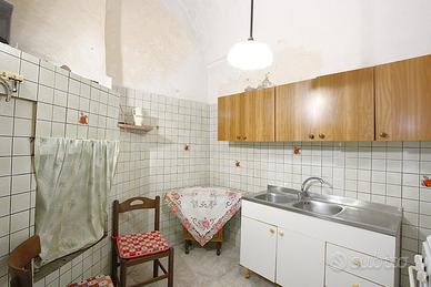 L'immobile si affaccia su un cortile interno riservato ed è dotato di terrazzo di proprietà, accessibile tramite scala. La casa è composta da due vani, attualmente adibiti a camera da letto e salotto, oltre a un bagno. Completa la proprietà una cucina abitabile con camino, dotata di un ulteriore bagno, entrambi collocati all'interno della corte.