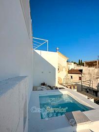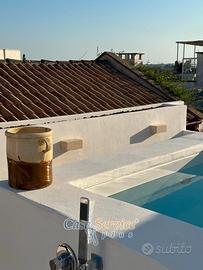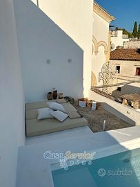 Nel cuore del pittoresco borgo salentino di Matino, Lecce, si trova una dimora storica recentemente ristrutturata e trasformata in un'oasi di puro relax, nel cuore del Salento. Situata a metà strada tra il mare cristallino e gli uliveti secolari, questa casa rappresenta un'opportunità unica per chi desidera vivere in un contesto "rural-chic". La proprietà, nella ristrutturazione ha trasformato l'antica dimora in una maison che trasuda fascino e tradizione. La struttura, costruita in più fasi attraverso gli ultimi duecento anni, è stata restaurata con attenzione ai dettagli, esaltando la pietra locale e preservando l'essenza autentica del luogo. La dimora è di circa 100 mq commerciali, si sviluppa su 3 livelli ed ha una struttura ideale per una residenza di charme o una seconda casa per vacanze. L'immobile include una cucina completamente attrezzata, un soggiorno, una sala da pranzo, un salottino, due camere da letto e due bagni. Numerose sono le aree relax, tra cui una sala ipogea scavata nella pietra antica, perfetta per leggere un libro o semplicemente rifugiarsi dal caldo estivo. All'esterno, troviamo una grande terrazza solarium con una piscina mediterranea, una splendida zona ombra con sedute ed una doccia esterna. Durante le giornate più calde, potrai rinfrescarti nella piccola piscina affacciata sulla chiesa settecentesca. Le comode sedute e i morbidi cuscini invitano a godersi una cena al tramonto o sotto le stelle. Le camere da letto, dominate da imponenti volte a stella e pietra leccese, conservano il fascino antico, esaltando il carattere salentino della maison. Vi è inoltre un piccolo angolo lavanderia e un ampio spazio interrato multiuso. La dimora si trova a Matino, Lecce, in Puglia. La spiaggia di Gallipoli è a 15 km di distanza, mentre Punta della Suina si trova a 15 minuti. Lecce è raggiungibile in 50 km. Per maggiori informazioni chiamare il numero verde gratuito anche da cellulare o il Maf-210