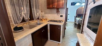a pian terreno con sala, cucina con termocamino, vano cottura, bagno, piccolo garage e cantinola;