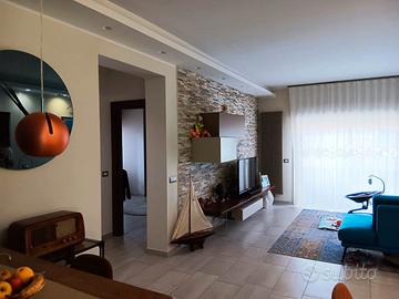 Appartamento posto al 2 piano, rifinito e ristrutturato,così suddiviso: ingresso con ampio living mq 36,cucinotto,disimpegno,3 camere, doppi servizi,uno con vasca e uno con doccia, lavanderia, e ampio balcone a giro in parte terrazzato. Pronto per essere abitato,comprende anche un garage soppalcato di mq 39 costo a parte.