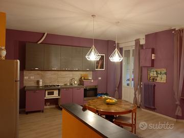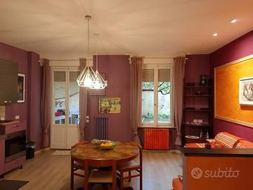 ingresso, corridoio, soggiorno con cucina a vista ed accesso a gradevolissimo e ampio giardino di 120 mq in proprietà esclusiva, tre camere da letto, un comodo studio, doppi servizi.