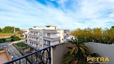 Aff. Annuale. Situato in Viale Vittoria 257 ad Alba Adriatica, a soli 50 metri dal mare, questo accogliente appartamento trilocale di circa 60 mq si trova al terzo piano di una palazzina dotata di ascensore. L'ingresso conduce a un luminoso soggiorno con angolo cottura, collegato a un piacevole terrazzo ad angolo con esposizione nord-est, ideale per godere della brezza marina. La zona notte comprende una camera matrimoniale e una seconda camera con due letti a castello, perfetta per famiglie o per chi desidera ospitare amici. Il bagno è comodo e provvisto di box doccia. Completa la proprietà un pratico posto auto coperto con accesso diretto dalla strada tramite cancello automatico.