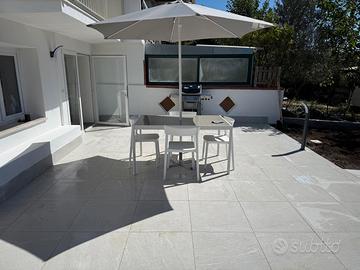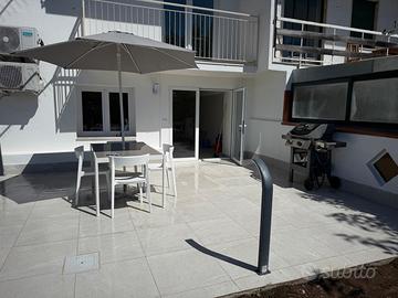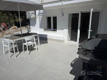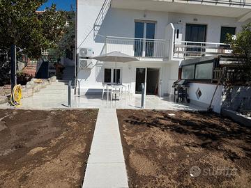 Agropoli, via degli Ulivi, soluzione semi indipendente di circa 758 mq, completamente e finemente ristrutturata ed arredata, composta da cucina/taverna, due camere da letto e bagno, Dispone inoltre di giardino in parte pavimentato e posto auto esterno.
