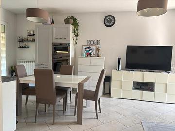 Comodo accesso al garage doppio di circa 30 mq raggiungibile tramite una scala privata che porta direttamente alla zona autorimessa. Zona living ampia con cucina open space, con porta finestra che affaccia direttamente sul retro del giardino; passando al reparto notte si trovano due ampie camere matrimoniali con balcone e un bagno di ottime dimensioni con doccia e balcone. Conclude l'immobile un pratico e funzionale ripostiglio/lavanderia.