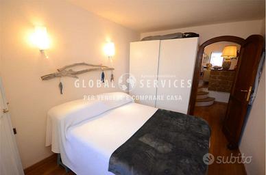 Al primo livello si sviluppa un accogliente e luminoso soggiorno con zona cottura, completano questo piano una camera da letto matrimoniale e un piccolo bagnetto privato.