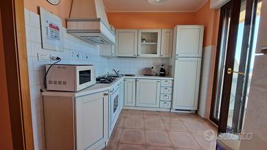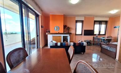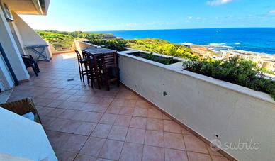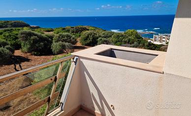 Alghero, l'immobiliare Nord Ovest propone un prestigioso attico con piena vista mare in prima fila zona Calabona. Secondo e ultimo piano in piccola palazzina con due ampi terrazzi a livello ed un altro terrazzo sovrastante l'appartamento. L'attico è composto da: salone, due camere da letto, due bagni finestrati, esposizione a sud con piena vista sul mare fino a Capo Caccia. Caminetto. Pompe di calore.