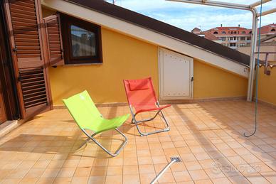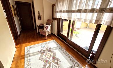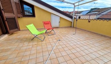 Alghero l'Immobiliare Nord Ovest propone in vendita appartamento su due livelli in zona semicentrale, in piccola palazzina bifamiliare e ingresso indipendente. Appartamento pari al nuovo posto al primo piano ed al secondo ed ultimo piano. Al primo piano: ampia sala, cucina, antibagno e bagno, due ampie terrazze abitabili con tende da sole. Elegante scala interna per la zona notte con: ampio andito, tre camere, bagno e terrazzo a tasca con tenda solare. Caldaia a gas con contatore singolo e pompe di calore. Autoclave indipendente con riserva di 500 lt. Impianto di allarme. Mq 120 più le terrazze. La casa viene venduta parzialmente arredata. Possibilità di acquisto garage di 35 mq con trattativa a parte. Appartamento molto luminoso e in ottimo stato. In zona tranquilla e con tutti i servizi nelle vicinanze.