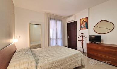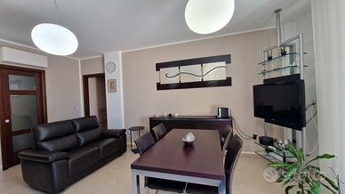 secondo soggiorno si accede, con scala in legno, ad un soprastante ampio appartamento attico (da completare con pavimenti e porte). Salvo l'attico soprastante, l'intero appartamento ha rifiniture di pregio, due caldaie Rinnai, climatizzatori Daikin nuovi, stufa a pellet. L'appartamento viene venduto parzialmente arredato. Compreso nel prezzo un posto auto scoperto e cantina. Date le dimensioni, l'appartamento può essere valorizzato con soluzioni diverse come ad esempio per casa vacanze o B&B.